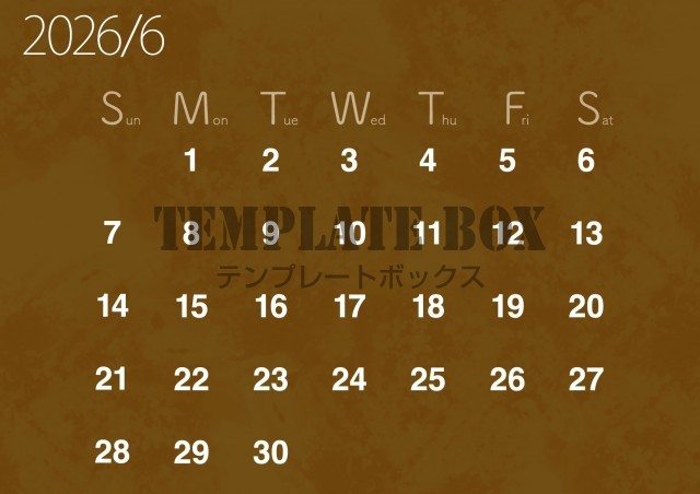 無料テンプレート:2026年6月カレンダー:横型ブラウンカラーカレンダー