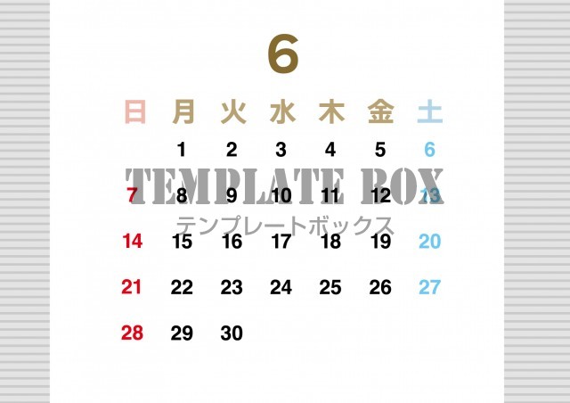 2026年6月カレンダー:縦型ストライプ柄カレンダー