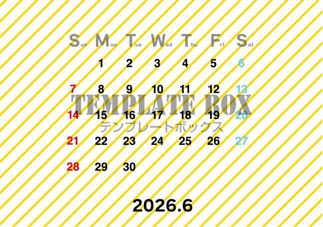 無料テンプレート:2026年6月カレンダー:横型ストライプオシャレデザイン
