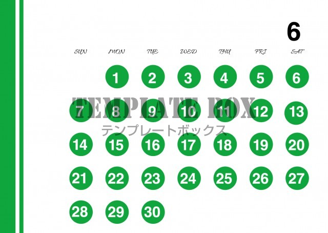2026年6月カレンダー:横型グリーンのデザイン