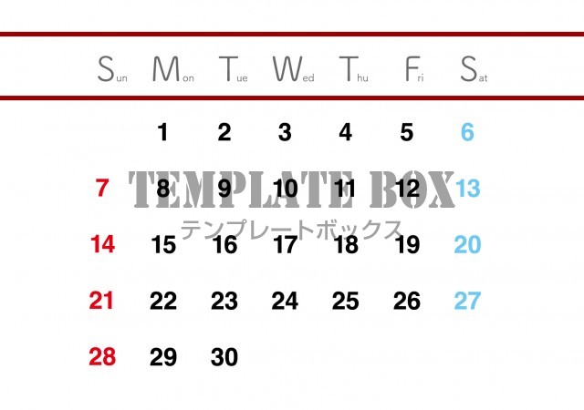 2026年6月カレンダー:横型赤のかっこいいカレンダー