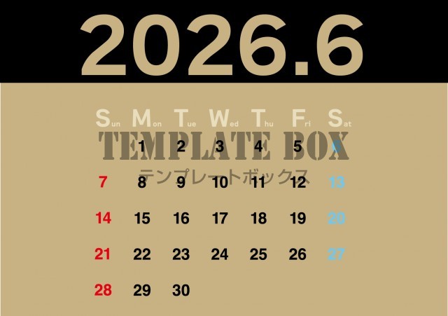 2026年6月カレンダー:縦型ブラウンカラーのカレンダー