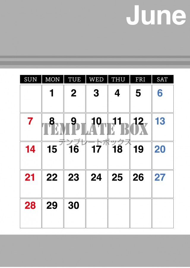 2026年6月カレンダー:横型グレーのカレンダー