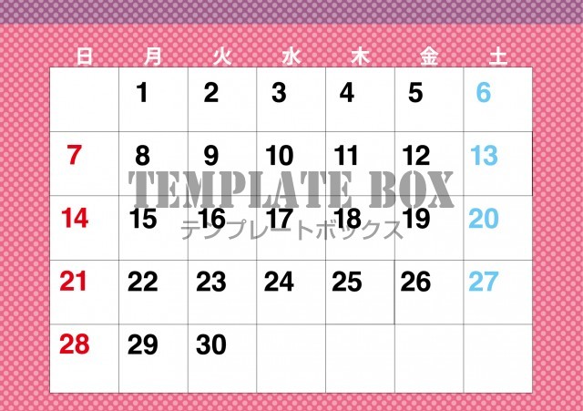 無料テンプレート:2026年6月カレンダー:横型ピンクのおしゃれなカレンダー