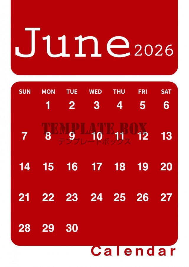 2026年6月カレンダー:縦型赤のカレンダー