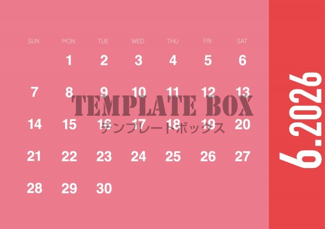 縦型赤のおしゃれなカレンダーです。2026年6月カレンダーです。白抜き文…
