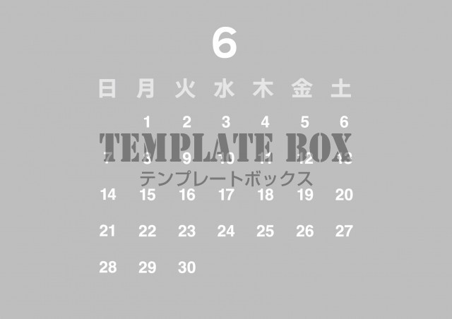 無料テンプレート:2026年6月カレンダー:横型明るいグレーのカレンダー