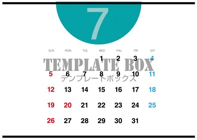 2026年7月カレンダー:横型ツートンカラーのカレンダー