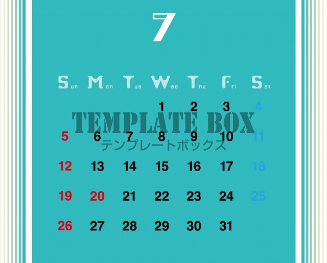 2026年7月カレンダー:縦型ストライプ柄デザイン