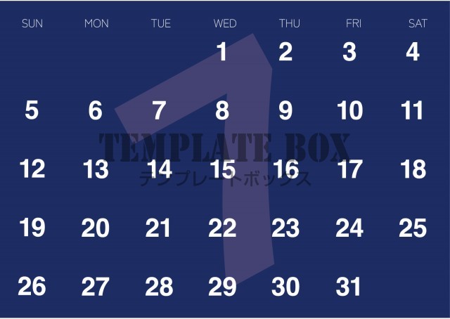2026年7月カレンダー:横型白抜き文字