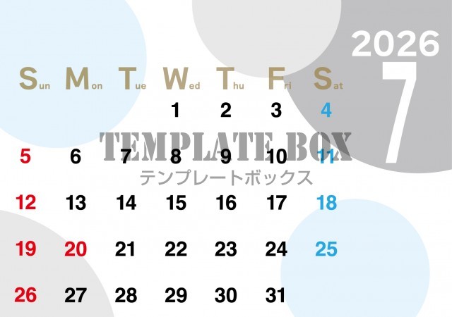 無料テンプレート:2026年7月カレンダー:横型ドット柄カレンダー