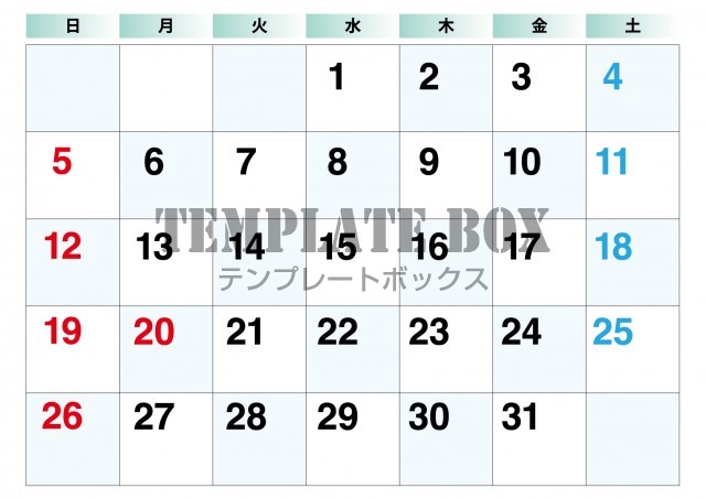 枠で仕切られて予定が管理しやすい便利なカレンダー素材です。シンプルカラー…