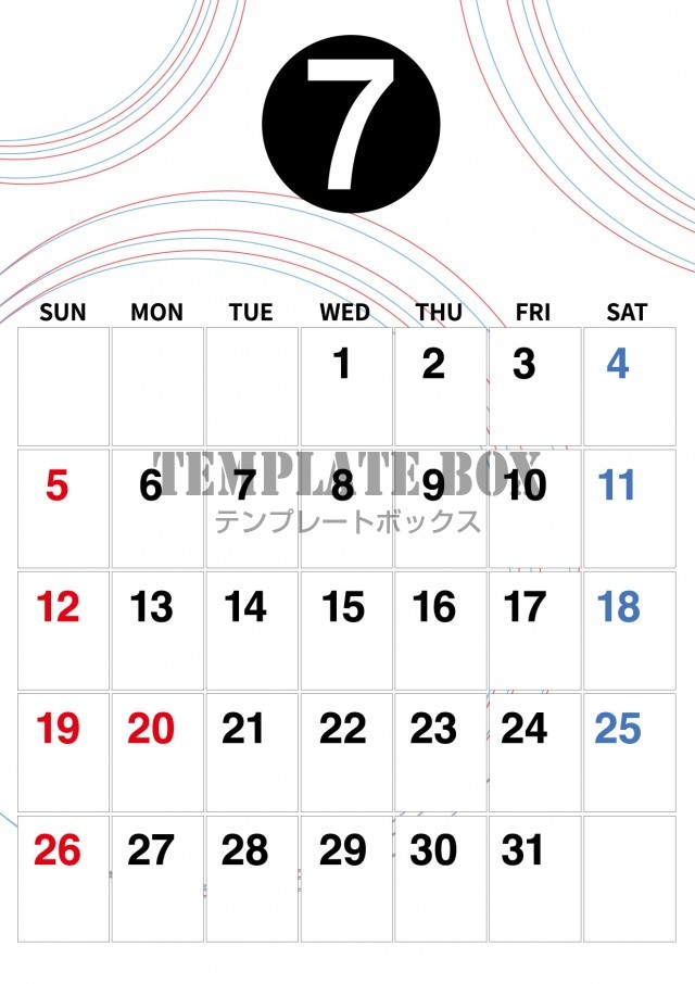無料テンプレート:2026年7月カレンダー:縦型スッキリデザイン