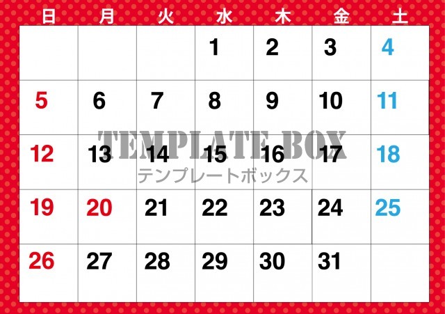 ドット柄が可愛いデザインのカレンダーです。背景が白で予定を書き込めて便利…